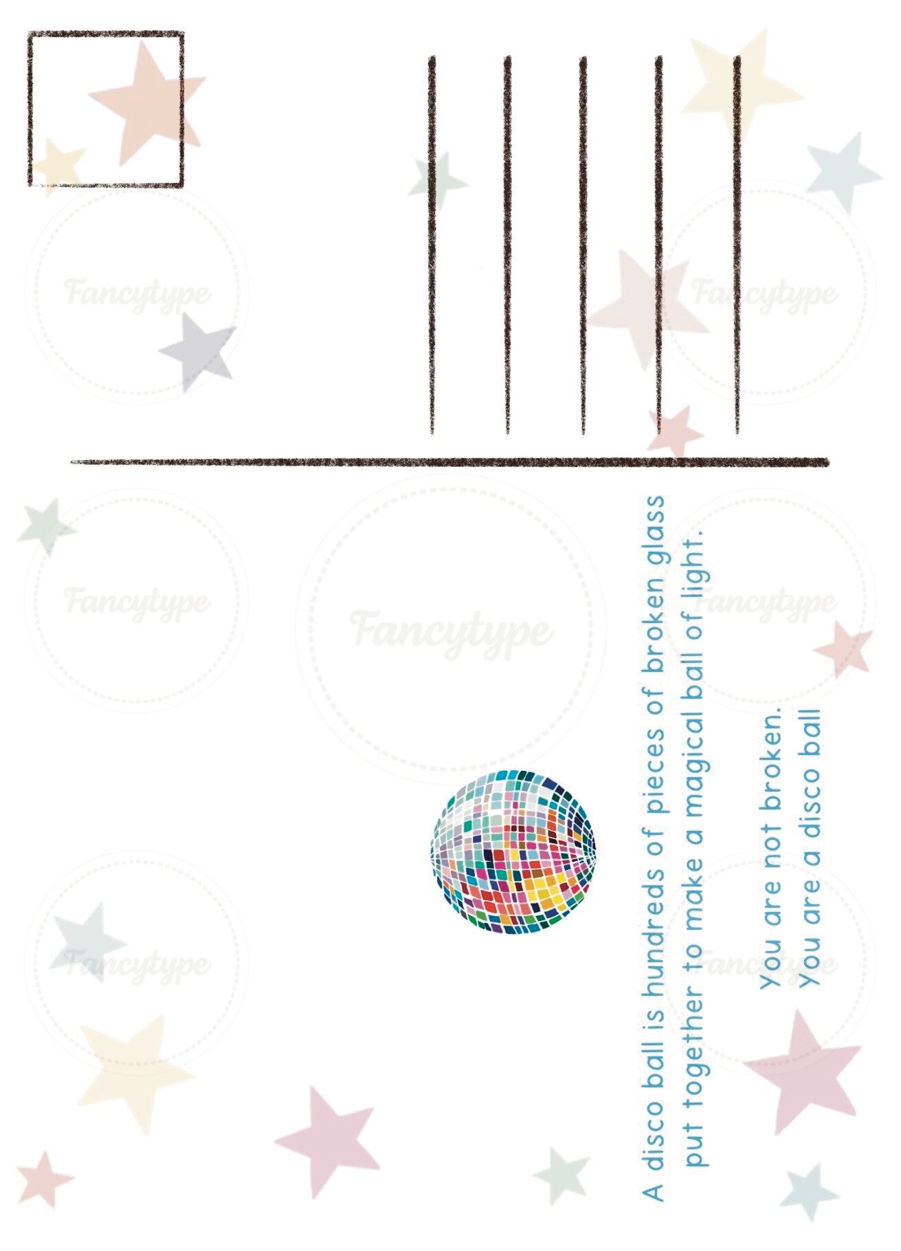 A Disco ball is hundreds of pieces of broken glass put together to make a magical ball of light. You are not broken. You are a discoball.